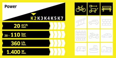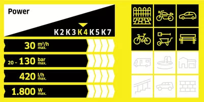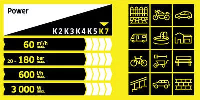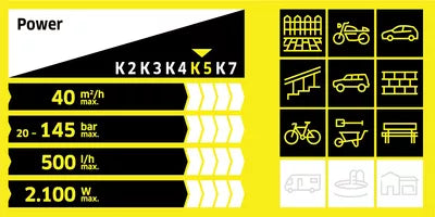 Легко заметить, что чем больше воды и чем больше давление, тем выше производительность мойки. Но не всем нужна максимальная мощность. Вот почему мы определили множество классов производительности. Результат: подходящая мойка высокого давления для любой задачи очиски.