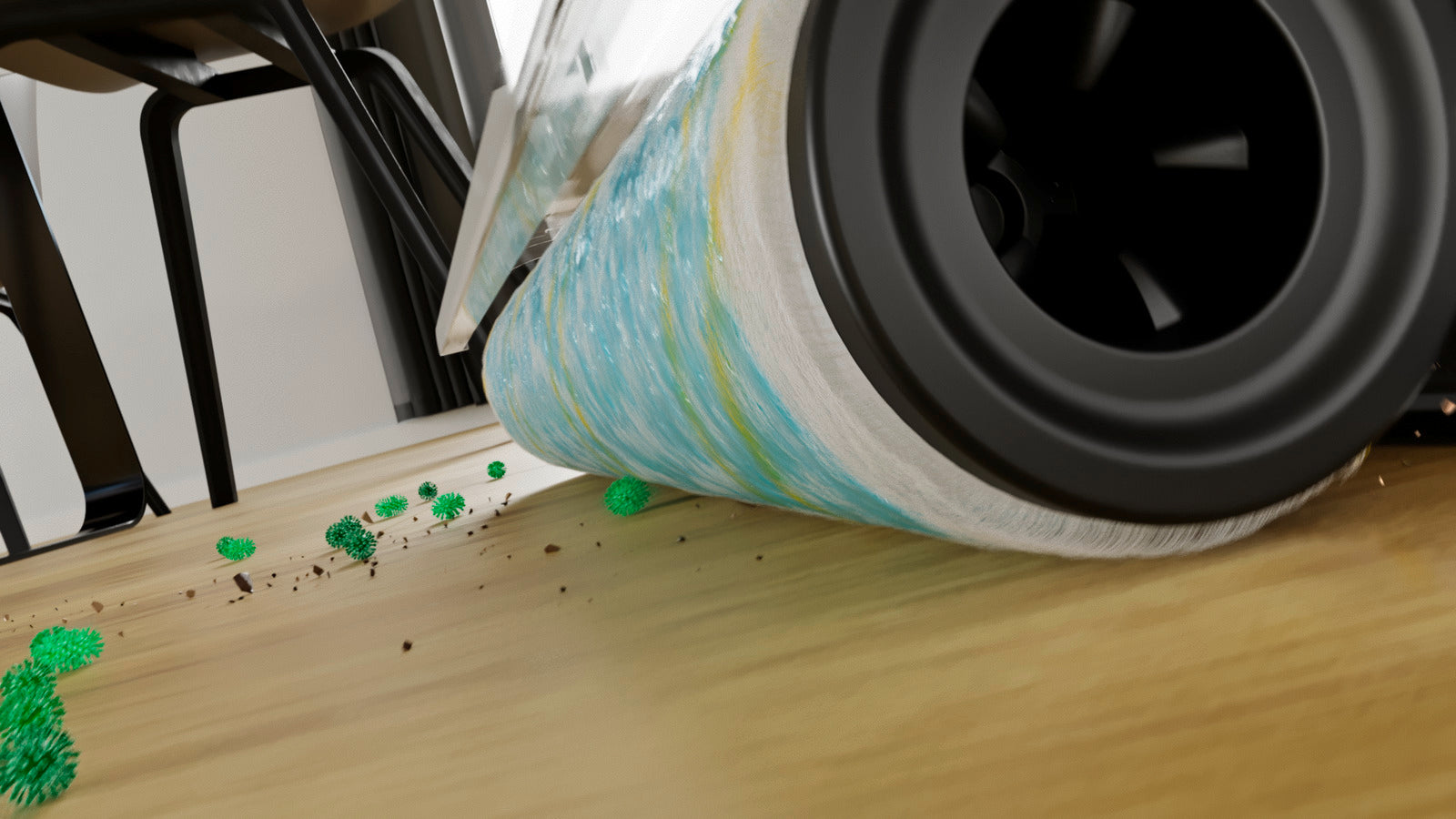 - Эффективная функция самоочистки со скоростью вращения роликов до 550 оборотов в минуту — для быстрой и удобной уборки без контакта с грязью.