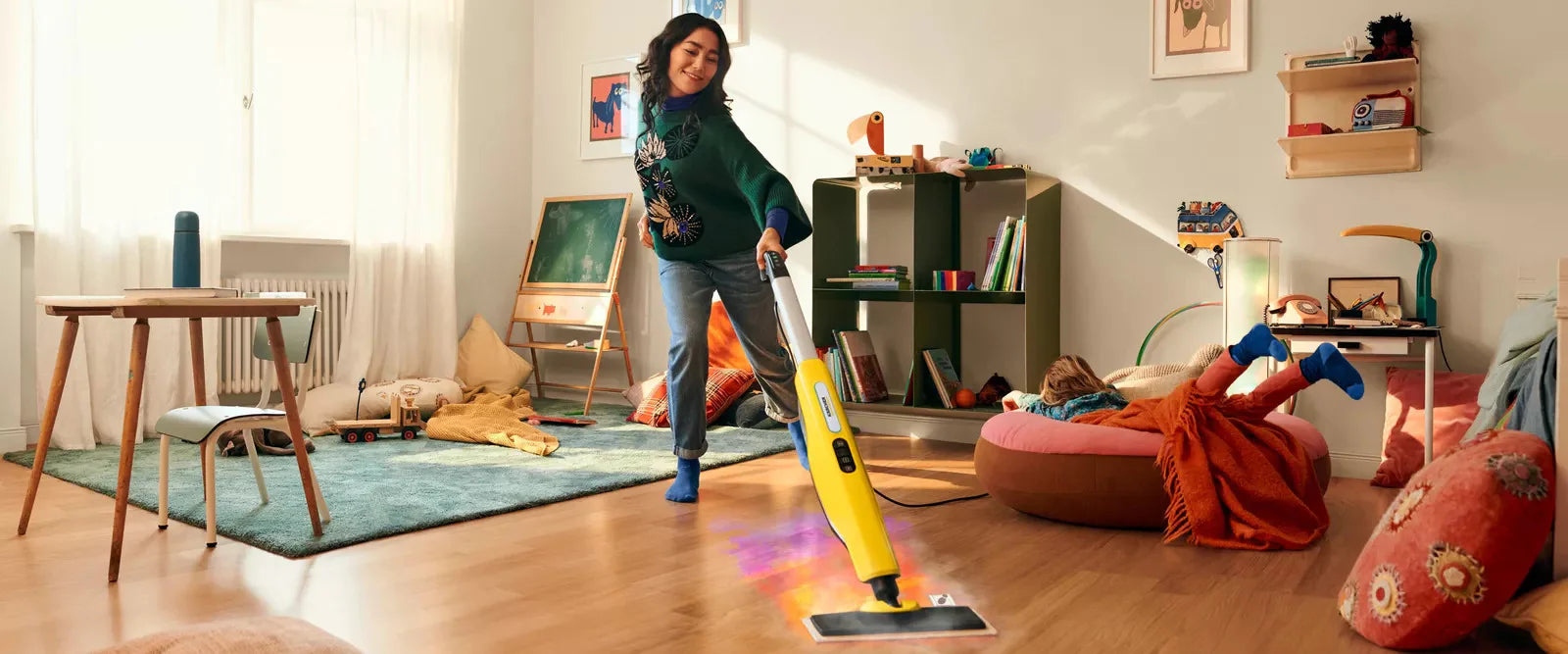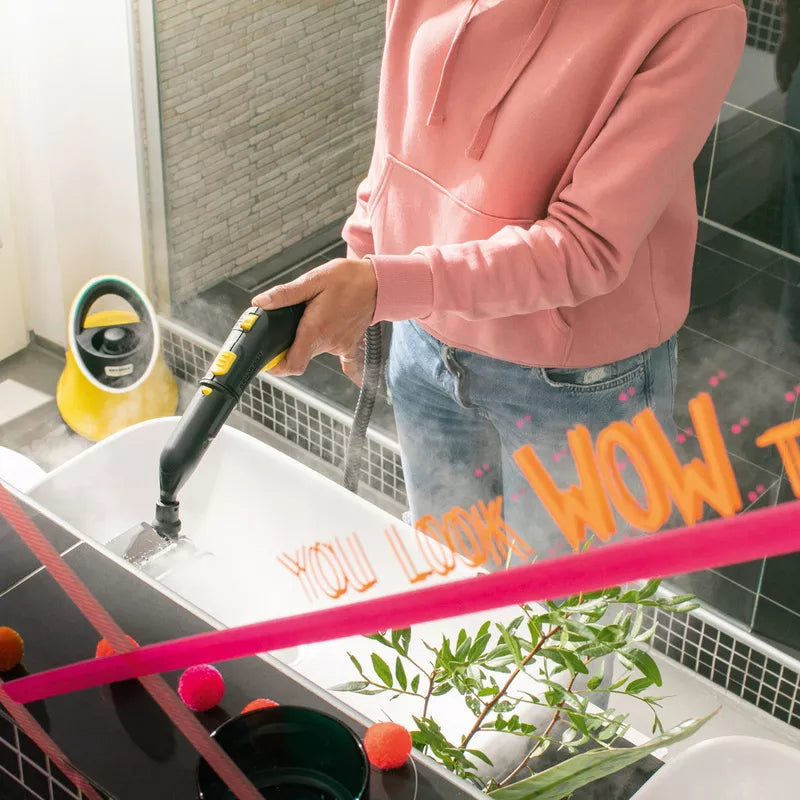 Bakteriyalar va koronaviruslarga qarshi oddiy va samarali: issiq bug '. Kuchli bug 'ta'minoti, yuqori bug' harorati, kuchli oqimlari va issiq tozalash matolari Kärcher bug' tozalagichlari koronavirus yoki gripp viruslari kabi viruslarning 99,999% * gacha, shuningdek, qattiq yuzalardagi odatiy maishiy bakteriyalarning 99,99%** ni yo'q qilishini ta'minlaydi. fittinglar plitkalar, nometall va boshqalar.